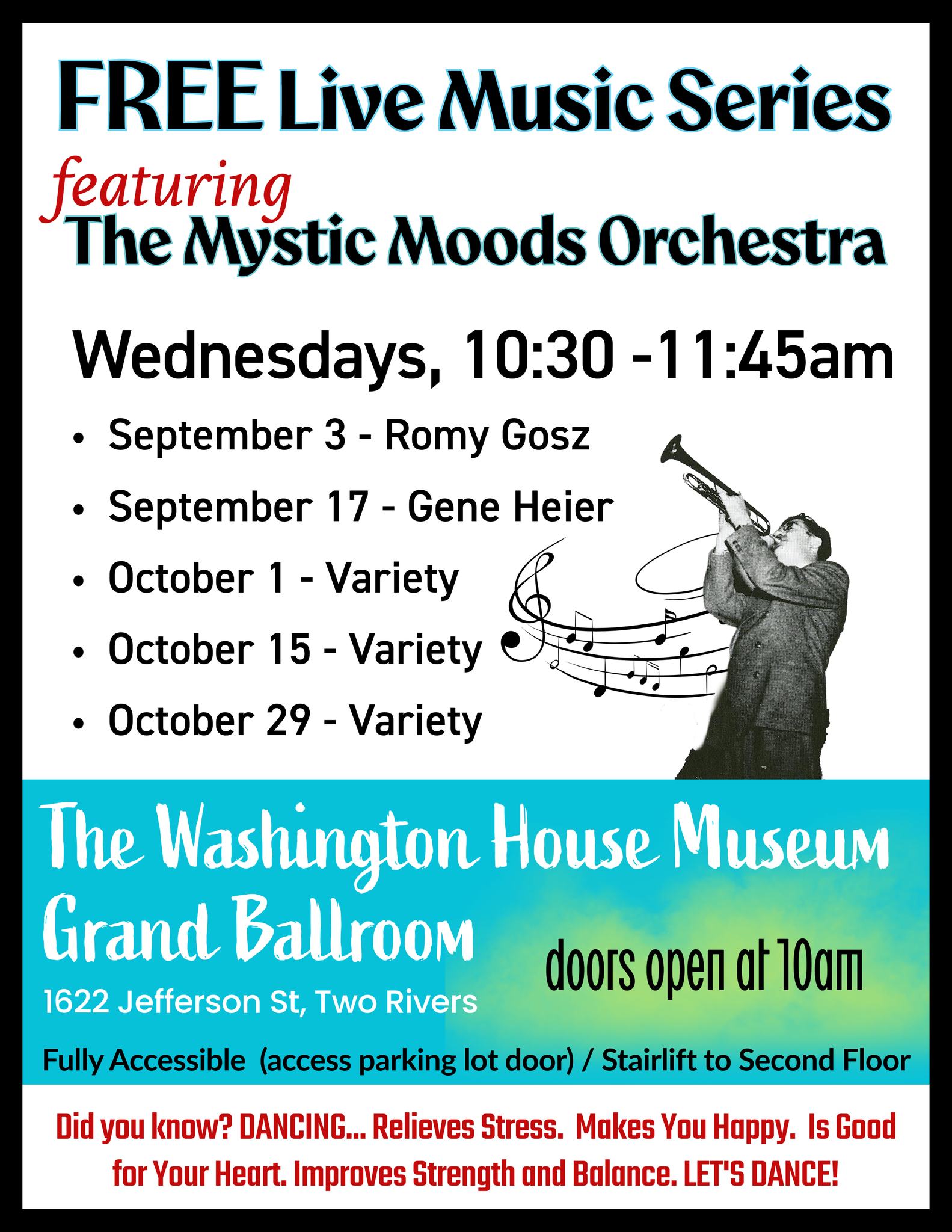 The Washington House Museum and ballroom is fully accessible with a stairlift to the second floor. The parking lot entrance is barrier-free. Call the museum at 920.793.2490 with any questions.