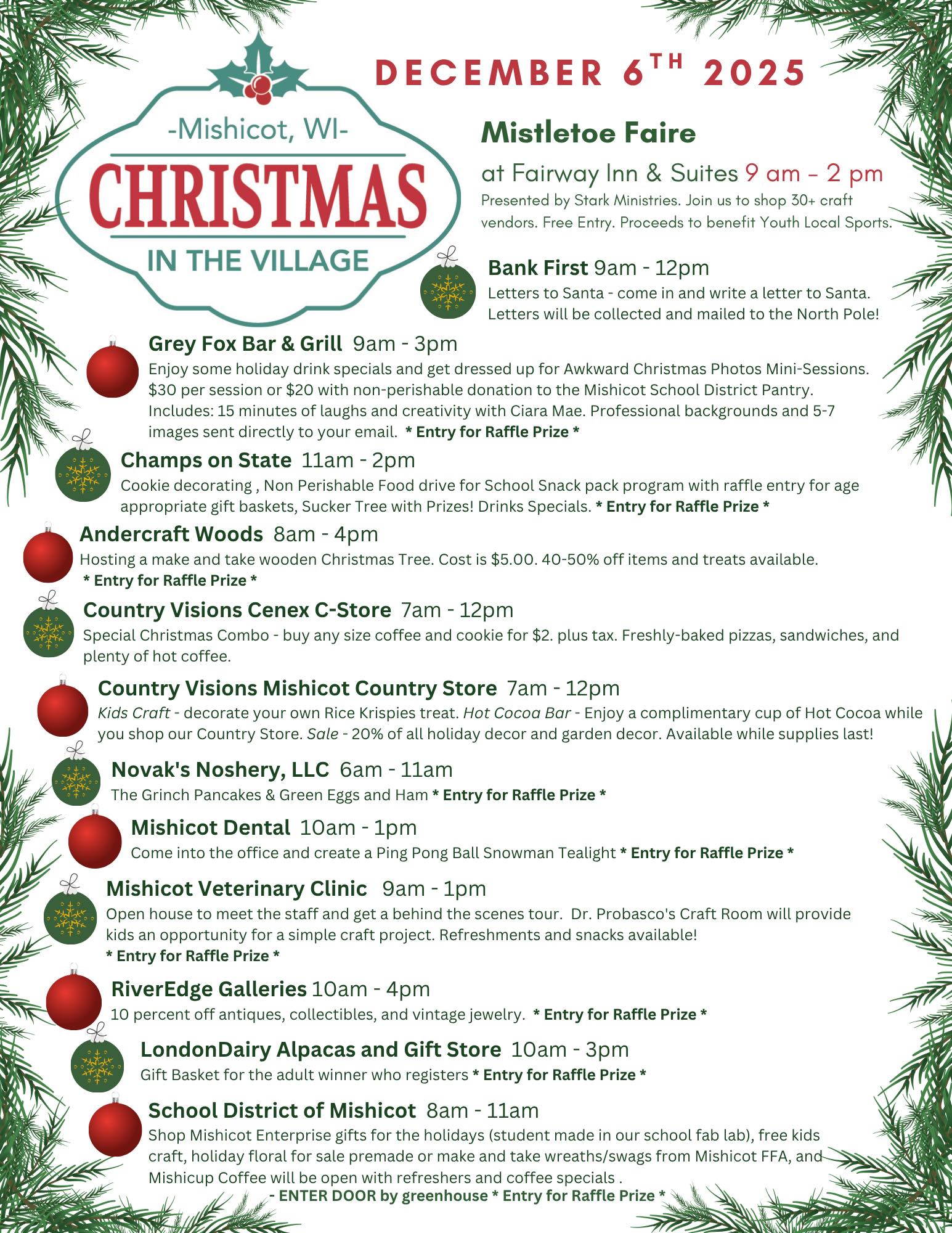 Events happening around Mishicot during "Christmas in the Village" on Dec. 6.