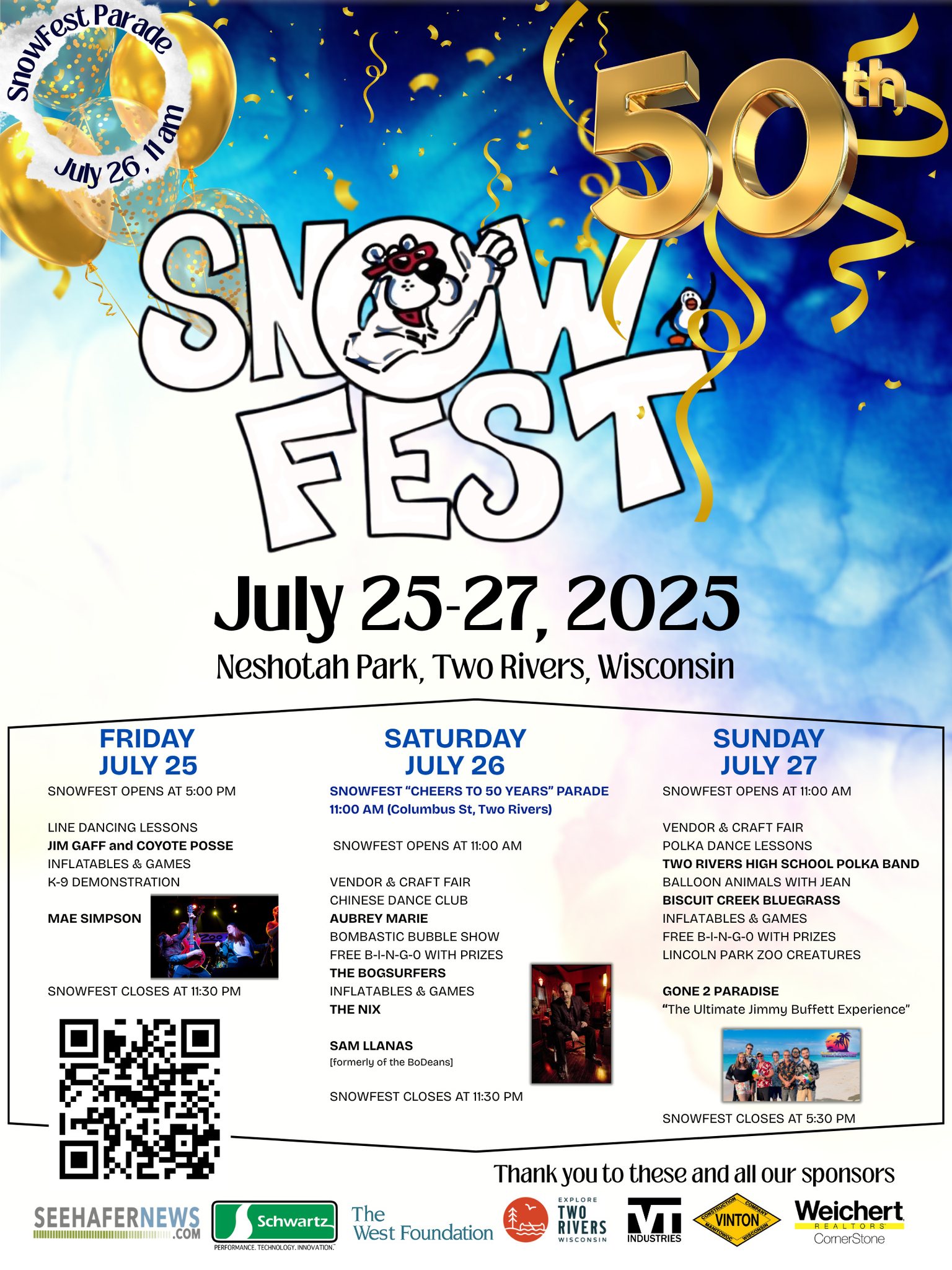 Celebrate snow in July! An incredible musical lineup, and an extensive selection of fantastic food, Wisconsin craft beers and other refreshments, a parade, entertainment for kids and more. Plus a vendor/craft fair (11-5 Saturday and 11-4 Sunday).